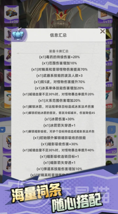 当然,在游戏当中也有许多的装备卡牌词条,是需要玩家进行收集的,当玩家获取了所有的装备卡牌词条后,可以整体性的增强自己的特殊属性战斗力,例如火属性穿透亦或是aoe伤害倍率等等。