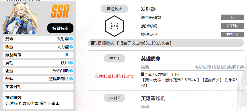 拉普拉斯:是一个实力比较强悍的输出型角色,可以直接使用发射器,然后针对对手造成63%的伤害。在蓄力之后就可以造成大量的伤害技能,还可以有效增加额外伤害,有效提升爆炸范围。