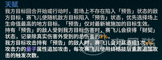队友在攻击带有印记的敌人时,赛飞儿会根据伤害的比例触发一次基于自身攻击力的追加攻击。这里有个小亮点:这次追加攻击是全队共享的,也就是说,即便你的队伍里有多个输出,赛飞儿的追加攻击只会在每次大招释放周期内触发一次。这一点需要合理搭配队友的技能释放时机,才能最大化其输出效果。