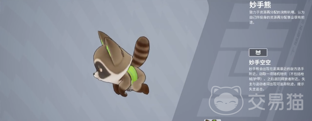 1、妙手熊,能偷取对方身上的一个随机道具,比如偷到一些枪械配件,医疗包都是不错的,除了可以偷取局内道具之外,还能帮助玩家找到最近的敌人,相当于起到了信息位置的作用,可以当做一次性的侦查道具来使用,但是妙手熊会显示可追踪轨迹,意思对手其实是可以顺着路直接找过来的,对于近战的意义不是很大。
