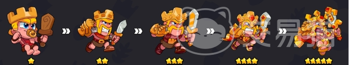 4、野蛮人之王,这也是增益效果较好的英雄,主要是提高队伍中近单位的攻击速度,2星时能每10秒蓄力一次铁拳,240的输出效果,并击退敌人;3星时每隔3秒回复240生命值,4星会提供狂暴法术。