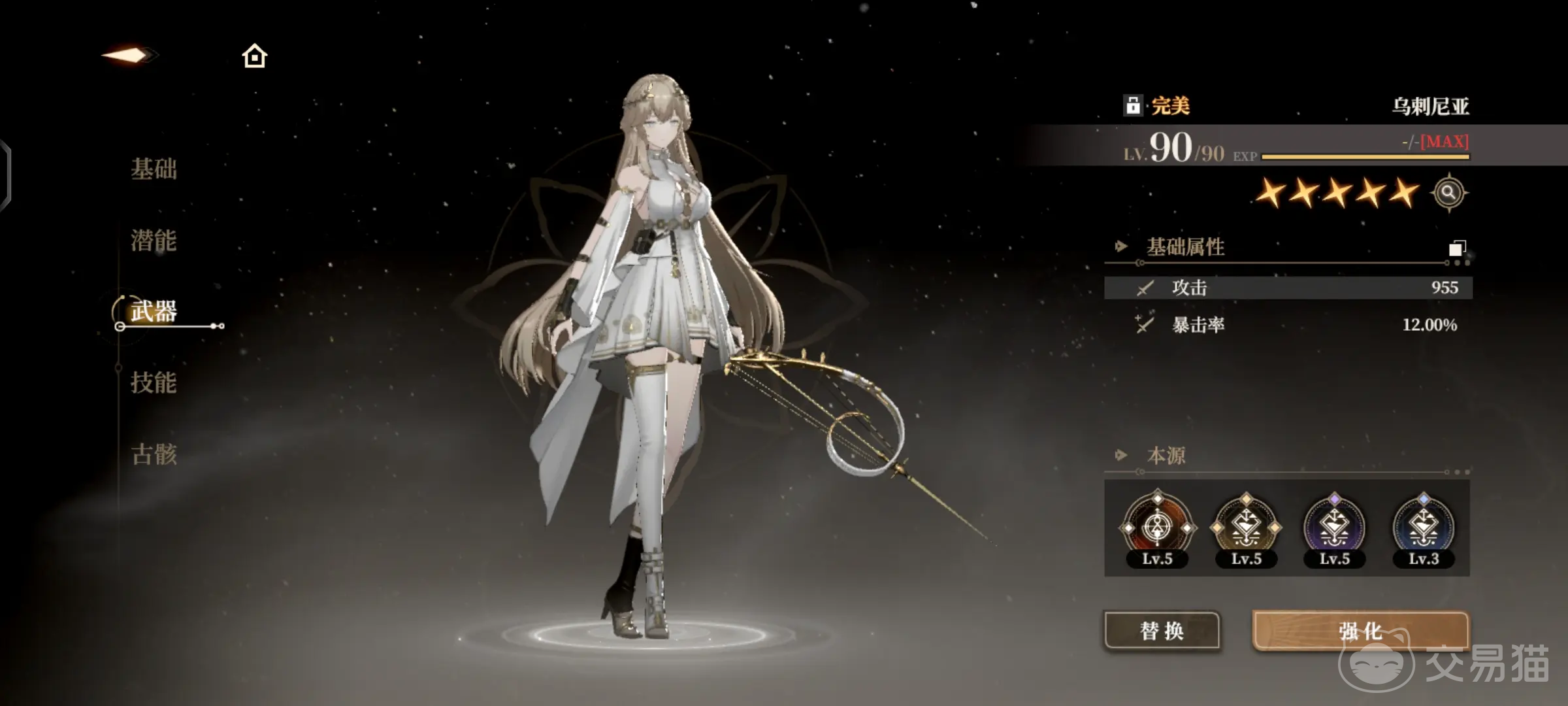 这是1名SSR的角色,拥有很强的近战输出能力,她的普通攻击有4段,第四段造成的伤害时最高的,并且在击中了对手之后,还能给敌方附加状态叠加的效果,对敌人造成更好的伤害,她的大招和自己使用的武器有关系,在大招释放时,使用武器对敌方不断的进行穿刺攻击,敌人受到巨大的损伤,此时如果她手中拥有音符,且队伍中成员的生命值都在80%以上的时候使用大招,还能让整体队伍的伤害都增加10%,她的这种机制效果在战斗中的实用性很高,能在合适的时机给队伍提供有力的输出加成效果。