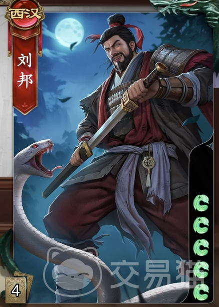 这位是西汉的角色,也是主公阵营可以选择的武将之一。这位的初始体力有5点,算得上是中规中矩的体力值。刘邦本身的1技能是斩蛇起义。这个技能是刘邦的限定技能,选择1张除了杀以外的手牌,之后可以销毁游戏里面的所有同名牌。接下来本局游戏里面每次弃牌都可以让另一位角色摸两张牌。这个技能很强,用得好可以左右游戏的胜局。第二个技能是大风歌,一个回合限定1次,如果摸到点数5的牌可以将其弃置,然后重新洗牌,随机弃置各角色一张牌,然后可以让一名角色摸到手牌上限。