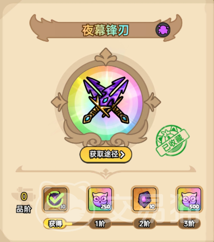 夜幕锋刃的获取方式有两种,一是可以前往沙漠地图寻找到蝙蝠怪物,当成功打败它们后就能有机会掉落该武器。二是可以通过挑战蝙蝠副本来获得,虽然这个副本的难度比较低,但是获取几率也挺低的,所以需要玩家多次尝试。