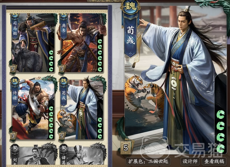 他的“二虎”可以让队友对敌人打出一张杀,若形成伤害,就能随机获得对方一张牌,随后重复此过程,直到其中一方不打出杀,“留香”能让一个角色摸2张牌,并且手牌上限加1,他的“驱虎吞狼”能让两个角色进行阵前对决,然后选择另外一名角色,让其可以对阵前对决中受伤的打出杀,直到目标重伤为止。