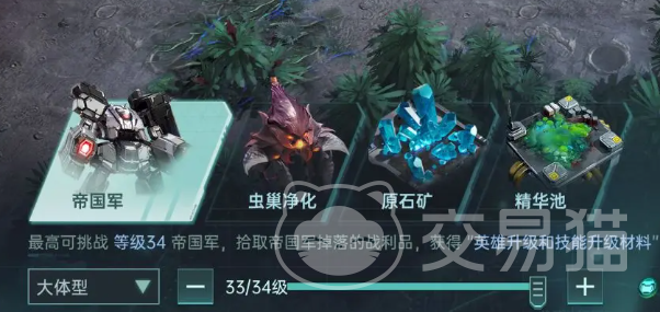 在挑战界面点击后,会在基地的附近生成对应等级的帝国军,由于在进入前大家可以选择不同体型的帝国军,所以可以根据自己的兵种情况来选择,比方说直接选择被自己克制的体型,这样能大幅提高挑战的成功率,顺利击败敌人后就能拿到帝国军战利品,主要是经验药剂和原能结晶这两种材料,等级越高的敌人掉落的物资也就越多;