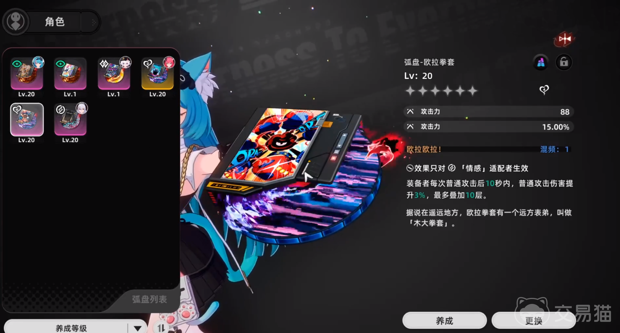 欧拉拳套属于是紫色品质的武器,也就是一般的属性,武器最高品质为金色,在后续还会推出高阶橙色武器装备。这个拳套的效果是只对【情感】适配者有效,在佩戴后能够增加普攻伤害3%,最多能叠加10层的伤害加成。想要获得攻击效果加成更上一个阶级的话,需要在游戏中找到木大拳套。
