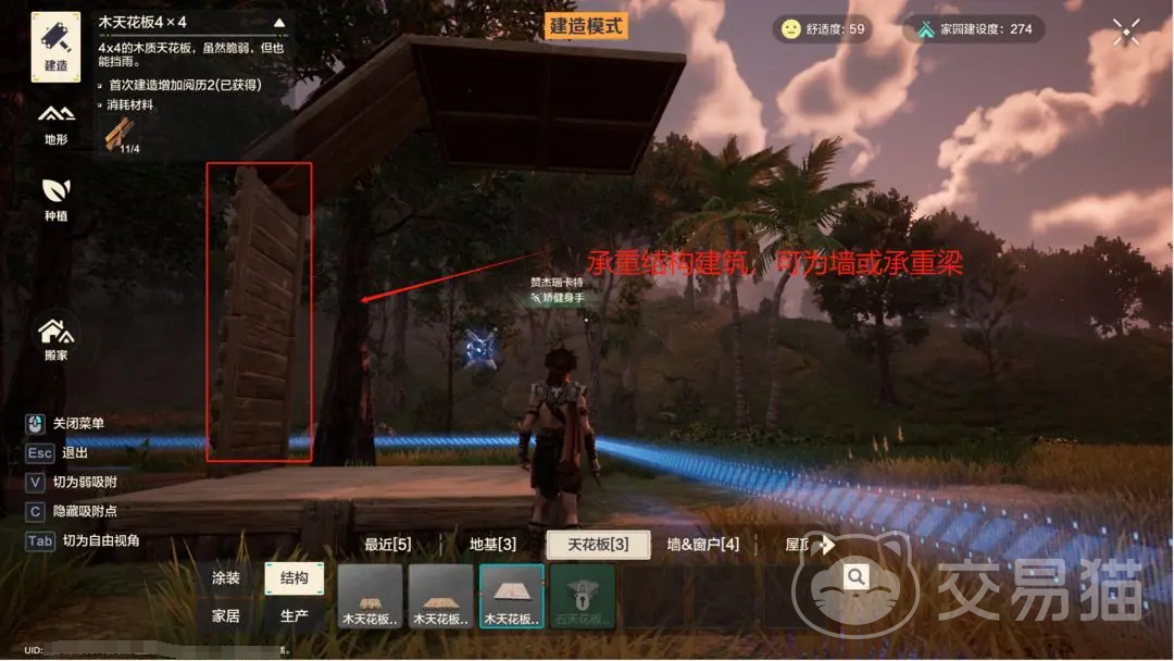 进入建造模式当中,就能涂装、结构、家居、生产等选项中选择需要建造摆放的物品,在获得配方后,并准备好建造材料就能完成建造。结构类物品是房屋建造的关键,打造时要注意合理的承重系统,不然高处的建筑可能会垮塌。而且功能型的建筑也需要注意,雨天暴露在室外的话是不能进行工作互动的,雨天也是无法再床上入睡的,所以需要搭建遮风挡雨的结构,才能让家园建筑正常运行。这些建筑物品都是有耐久度的,当然也能进行拆除,维修,移动等的操作。