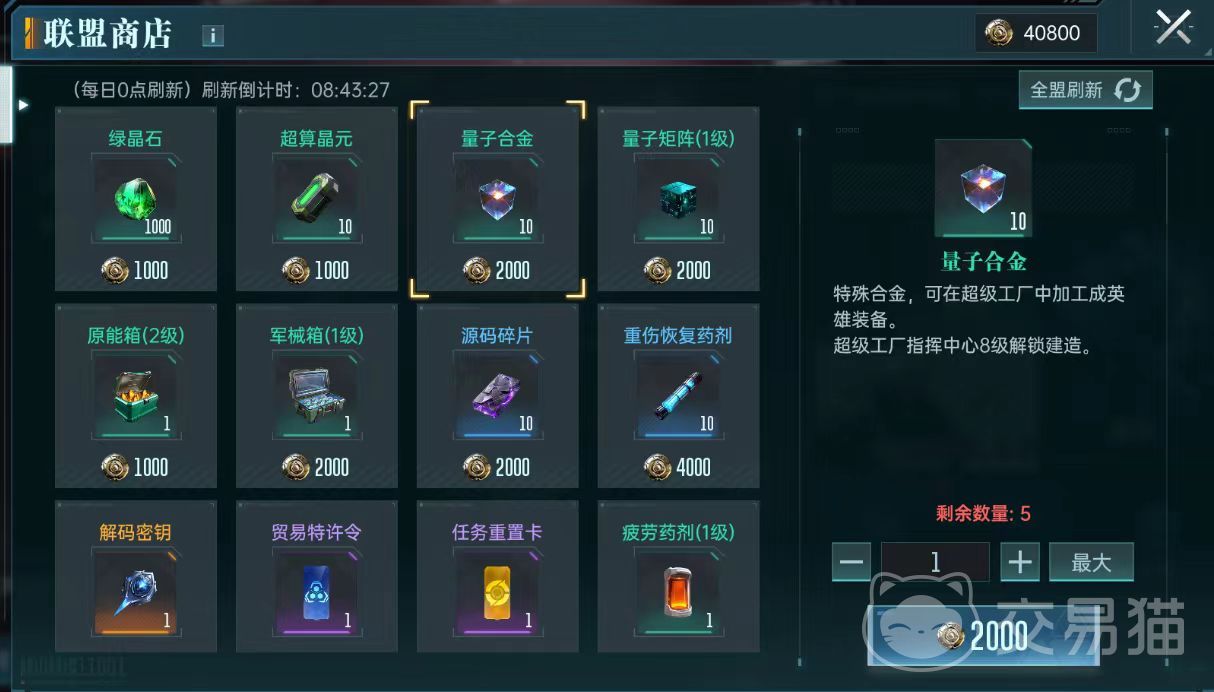 如果确实没有刷到橙色任务,也可以给紫色任务使用,最后才是绿色任务。另外在这里进行资源获取也是有着不同的优先级,前中期优先获得基础资源,随后是量子合金和量子矩阵,如果到了后期,量子合金和量子矩阵的优先级就高于基础资源了。这两样是兵种装备类型中最重要的资源,和英雄战力资源一样,是决定战力上限的核心类型。除了上面所说的星际贸易之外,量子合金还可以通过30级以上的虫巢进化、联盟商店兑换、功勋商店兑换,在礼包和通行证中开出来等各种渠道。