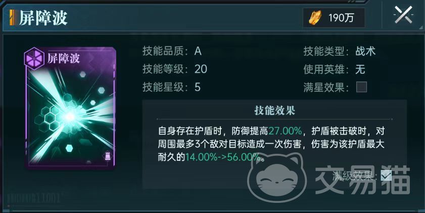 具体技能方面,布狄卡除了自身的核心技能不灭英灵,还额外选择了时空晶和供氧仪这两个a级技能。霍克除了黑障守护之外,选择了屏障波和活性顿这两个a级技能。这一套搭配主要的伤害来源是屏障波,队伍的伤害基本上都是由这个技能提供的。这个技能虽然是a品质,但是可以带来高额防御加成,更是在护盾被击破时,对周围最多三个目标造成一次伤害。护对值越高,造成的伤害也就越高。霍克的技能黑障守护有概率给自身添加护盾,这样有盾就可以破盾,破盾时还有几率使敌方进入黑障状态,使攻击无法命中。再加上活性盾的效果,护盾生成非常稳定。活性盾这个技能的效果是作为增幅技能来使用,提高耐久,受到普攻伤害有几率给自身施加护盾,护盾耐久值按照自身当前耐久值生成,持续10秒钟。完美契合整个队伍所需要的属性和性能。