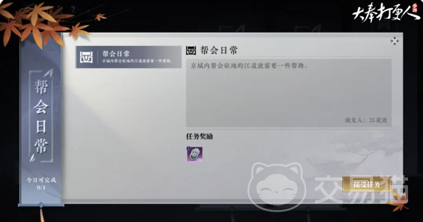 将”周侍郎案·上·救人”任务完成后,可解锁支线”大奉侠客行”,这个任务重可以和NPC于樊交流,选择想要加入的阵营,后续和阵营领袖对话,就能自主创建帮会,或者选择申请加入其他玩家创建的帮会。