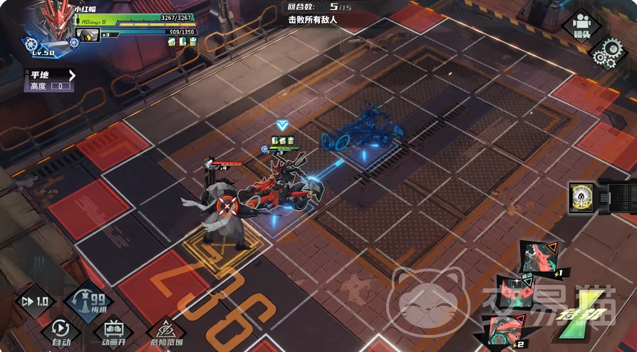 这是立绘看起来十分不羁的一个少年,“棱镜”阵营的角色。基础技1“狂狼猛袭”,对目标造成140%物理攻击伤害,战斗后使目标击退1格;基础技2“熏灼尾气”,对敌人造成130%攻击力的物理伤害,战斗之后给目标添加1层“创伤”,可持续2轮行动;基础技3“晫厉风行”,“瞬发”使自身部队获得1层“攻击强化”和“防御强化”效果。