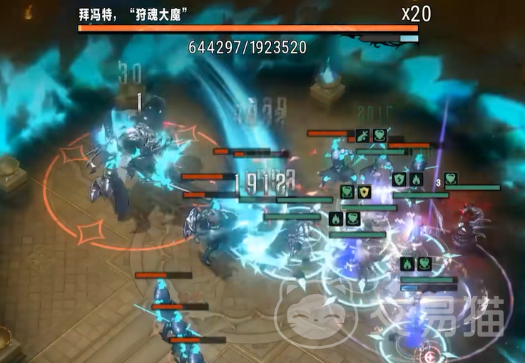 那么玩家就需要集中将附近的小怪击杀,这样就可以利用大招去扣boss的血量,几乎没掉10个血,boss就会召唤小兵来抵消伤害,而玩家的应对方法就是优先消灭小兵,同时队伍里的治疗奶妈要跟上技能保证状态就能完成击杀。