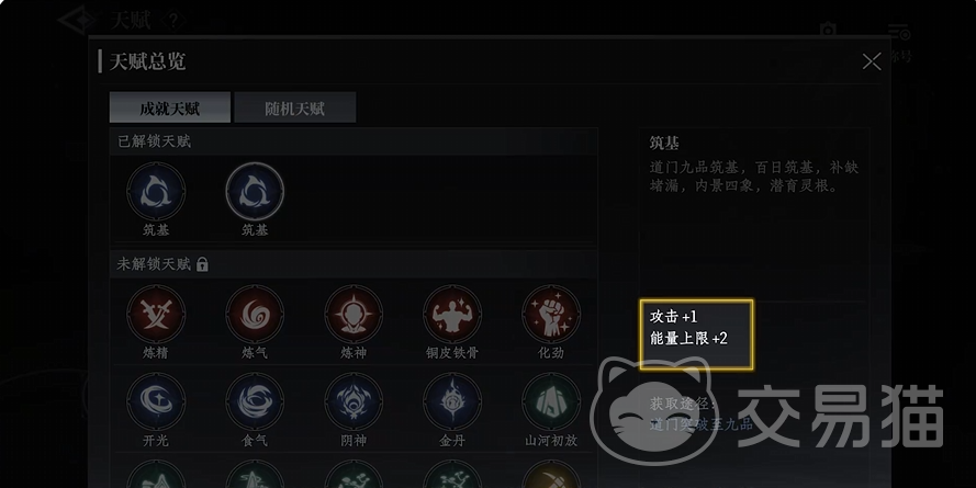 天赋可以提供不同的战斗属性和副值相关属性,通过主菜单的天赋按钮就能进入到天赋界面,天赋有两种不同类型,一种是随机天赋,另一种则是成就天赋,在天赋总览当中可以预览所有的天赋效果和这些天赋具体的获取条件。