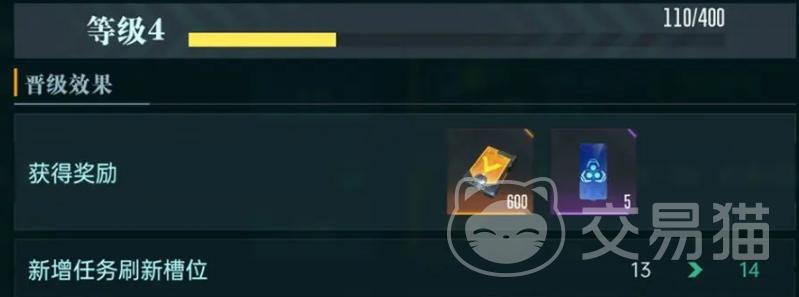 完成贸易任务得到声望,累计声望提升等级,增加任务刷新的栏位,并且还可以得到信用点和特许令等奖励。等级越高刷出高品质的任务的概率就更大,不过任务品质并不影响声望获取,都是只给10点。