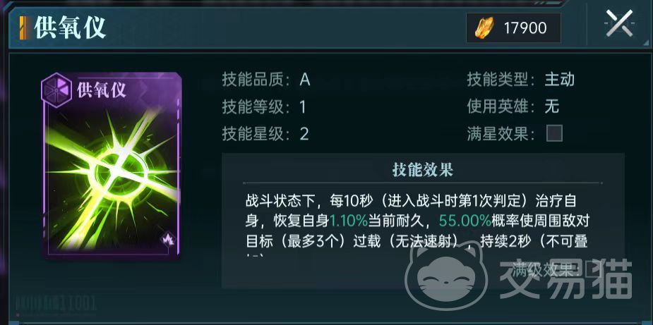 通过游戏之前进行的测试,小编总结出了一些非常好用的a级技能推荐给大家,它们在某些程度上甚至还要超过s级,非常值得选择。第1个是供氧仪,供氧仪是a级别主动技能,它的效果是在进入战斗后,每10秒钟就可以对自身进行一次治疗,恢复一定的耐久值,还有几率使周围敌对目标处于过载状态,过载之后无法进行速射。这个技能非常适合反伤队伍选择,提升到满级之后,每10秒钟会恢复自身6%的耐久值,满星情况下超载概率也会提升很多。