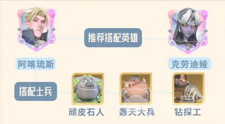 上阵英雄搭配方面,可搭配克劳迪娅,士兵可选择顽皮石人,轰天大兵,钻探工,这套搭配可以施加控制并扰乱敌方的阵型,当敌方的陆地单位较多时,更适用该阵容,注意这套阵型是比较被空中单位所克制的,能对敌方后排角色造成较为明显的威胁。
