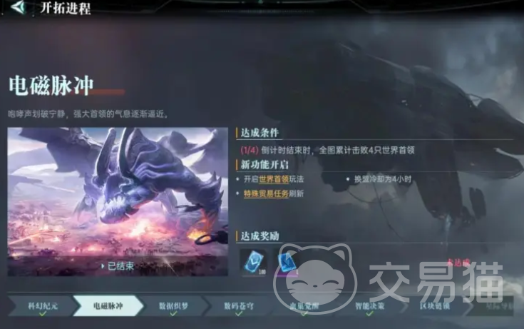 想要挑战世界首领,首先需要等待游戏进程推进到一定阶段,解锁“电磁脉冲”科技后,才会正式开放BOSS战斗。只有在此之后,玩家才能进入世界首领战场。