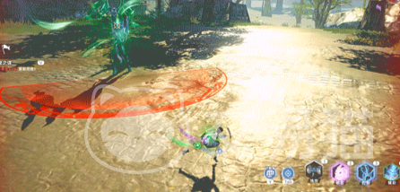 他在进行踩地的时候会跳起蓄力踩击地面,在踩击的时候地面会显示范围,大家只需要离开这红圈范围就可以了,之后是第三种攻击手段放火,在放火的时候它会跳到空中然后释放灵火追踪攻击玩家。