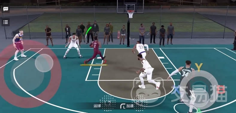 其实该操作过程中,对于玩家的节奏控制很重要,尤其是很多假动作的组合,当然了到时候难免也会有身体上的对抗,那么玩家需要做的就是利用护球手保护球权,同时用身体挤开空间,降低被抢断风险。