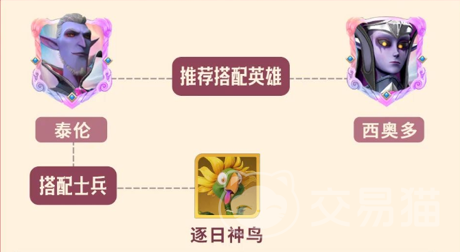他上阵搭配的英雄比较推荐西奥多,适合搭配的士兵是逐日神鸟,这是一套全空军的阵容搭配,如果对方是缺少对空单位的情况下,就非常适宜拿出该组队方式展开战斗,不过需要注意,此种搭配方式在面对比较大规模的团队战斗当中显得会比较乏力。