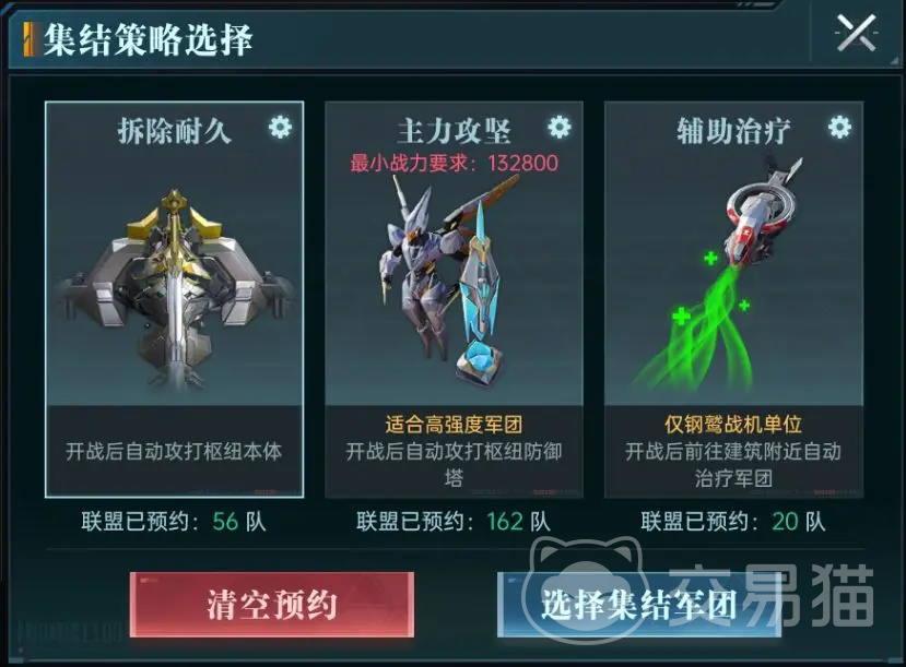 成员可以根据联盟界面中的日程,选择合适自己的时间去预约,选择队伍参战,日程开始后,军团会自动参与集结,无需手动参与战斗,不仅让联盟增加了战力,还能轻松的拿到各种资源。