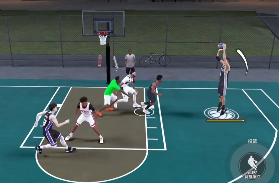 其次,这个投篮条机制在游戏中的作用是多方面的。一方面,它能够显著地帮助玩家提高投篮的命中率。当投篮条达到最佳释放点,也就是完全充满白色时,玩家如果能够及时松开投篮按钮,那么投篮的准确性会大大提高。此外,投篮进度条的最顶端被设计为绿色,这表示达到了完美投篮的状态。然而,即便达到了完美投篮的状态,也不能保证每次都能命中,因为球员的数值属性也会对投篮结果产生影响。另一方面,投篮条的填充速度和最佳释放点的不同,可以反映出不同球员的投篮能力和节奏。例如,一些球员可能拥有更快的投篮条填充速度,而另一些球员的最佳释放点可能更易于达到。这些差异都体现了球员各自的特点和能力。此外,球员的数值属性,比如中锋的三分球数值,也会对投篮的命中率产生影响。即使投篮条显示为最佳释放点,数值较低的球员在三分线外投篮时,仍然可能面临命中率不高的问题。同时,这个机制也增加了游戏的策略性,因为玩家需要根据投篮条的变化和球员的能力来选择最合适的投篮时机和位置。