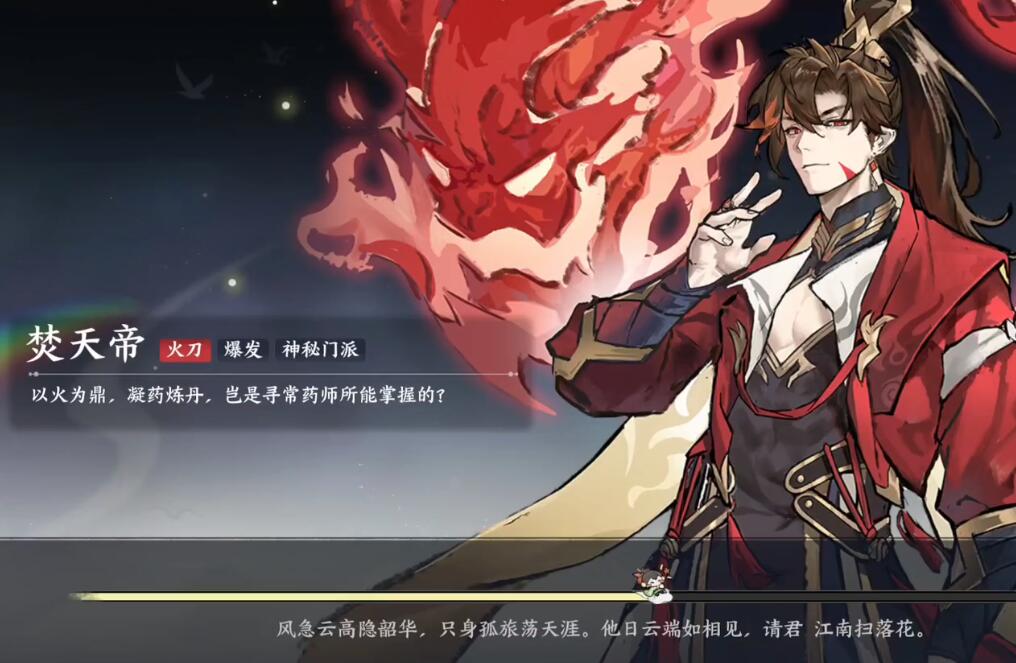 这种技能组合使他在面对不同战斗场景时,具备极强的适应性。例如,在清理小怪时,范围技能可快速清场;而在BOSS战中,单体爆发则能迅速削减敌方血量。此外,焚天帝的被动技能炽炎之心还能在战斗中叠加暴击率,随着战斗时间延长,输出能力会显著提升。如果你想要充分发挥焚天帝的实力,就要使用合理的培养策略,玩家应优先提升他的攻击属性和暴击率,例如选择天生神力、天眷之人等天赋,以最大化输出效益。装备方面,推荐搭配火属性加成的武器和共鸣装备,例如赤霄剑或朱雀翎,这些装备不仅能强化技能效果,还能通过套装属性激活额外增益。