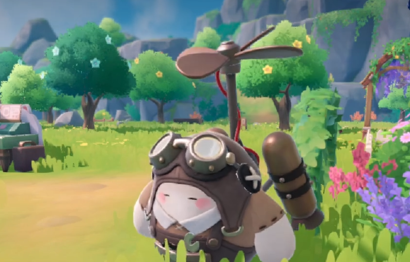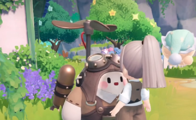 这个捕捉是一个教学,玩家们可以了解到如何捕捉到米姆们。在教学结束之后,咱们也是顺利的获取到了蓬蓬哈。接下来我们就需要去将扳手给还给刚刚那位。从对话之中我们可以得知它叫做波奇,是一个发明家。为了感谢我们帮它拿回了扳手,所以它准备帮我们修好飞行屋。
