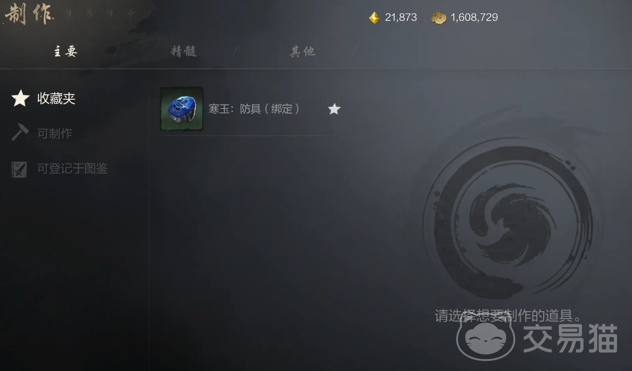 制作系统一共分为三个板块,分别为主要、精髓以及其他,在不同的板块当中。我们可以在不一样的子分类中,找到自己所需要制作的东西。主要板块的话,就包括着游戏中大部分的道具。然后这里还会提供一个收藏夹,会优先展示大家所收藏东西。