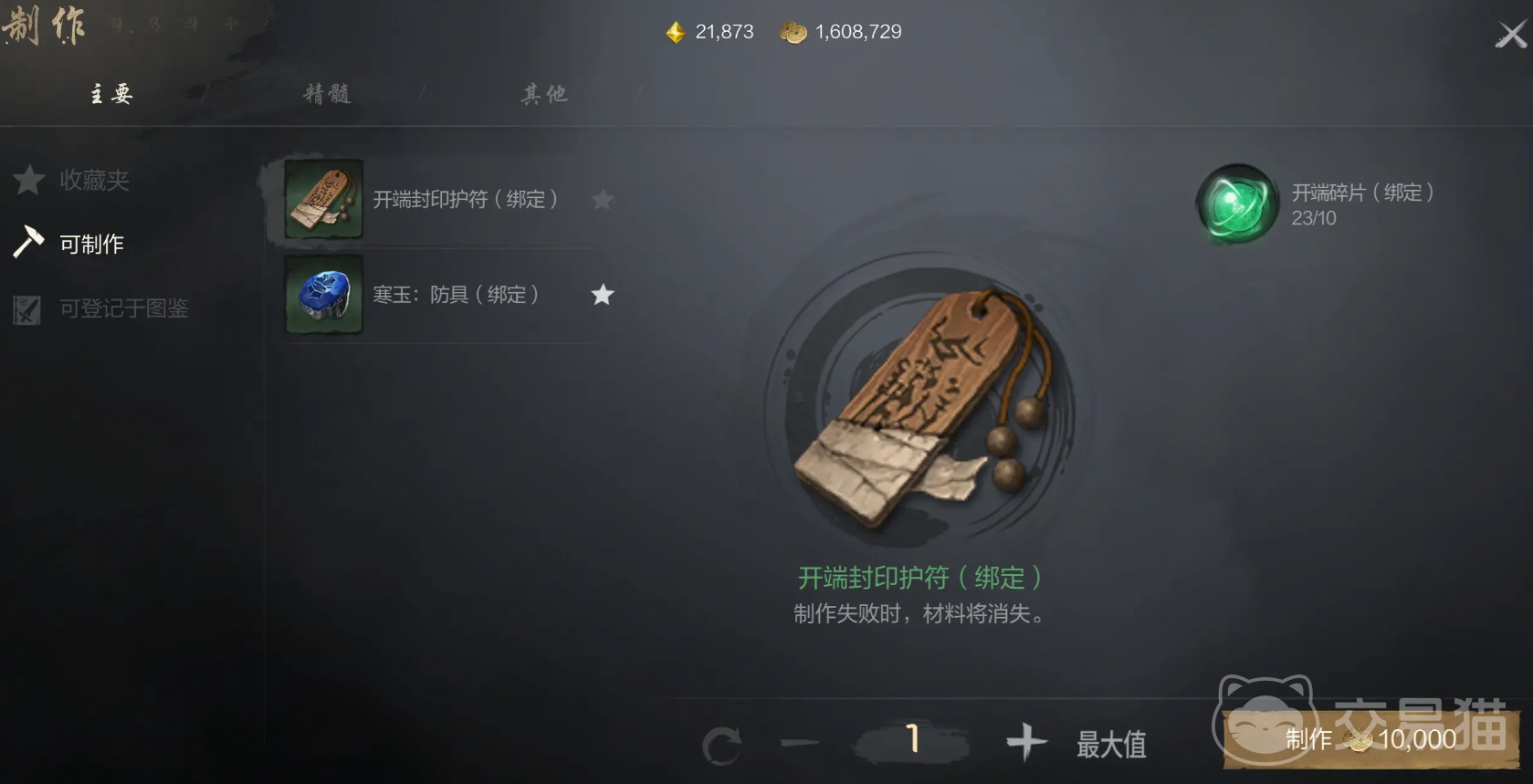再次点击的话就可以取消收藏,当你的资源碎片数量充足,就可以在主要页面中展示你当前可制作的东西,如此一来就不需要费力的寻找。然后这里只会展示在可登记图鉴上面,当你成功制作出来的话,那么便会永久的展示在图鉴上面,要是想找的话可以直接看到。