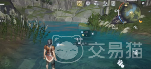 第1个是在漂流小岛屿,玩家可以来到小岛屿中间的水潭位置,可以看到第1个宝箱,具体位置是在两棵树的中间。看上去是很清楚的,可以说是一目了然,很快就可以找到。