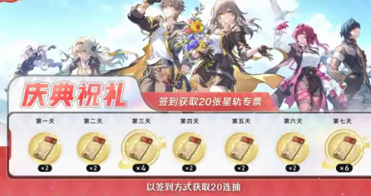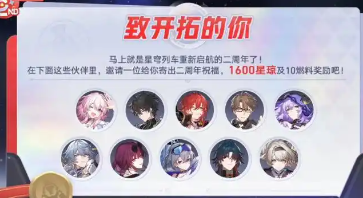 在庆典祝礼活动期间,每日登录游戏签到累计签到满七天,可获得二十张星轨专票,这为抽卡提供了稳定的资源基础,星铁二周年生日当天,登录游戏即可收到星琼以及燃料资源,星琼数量可以完成抽取十次抽卡。