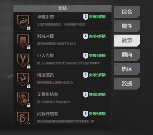 他在徽章效果上面有卓越手感徽章,这个徽章能够敏锐地感知球员上篮时机的把握情况,当球员在比赛中拿捏好上篮的时机,就可以为球员带来额外的加成效果,而对抗冲筐徽章则是为那些喜欢冲击内线、打法强硬的球员量身打造的利器,它的主要作用是全方位地提升球员随意冲击篮下的能力,巨人克星徽章同样有着不可忽视的作用,这个徽章通过一系列隐藏的属性调整,能够有效地提升球员在被更高大对方球员防守时的上篮命中率。