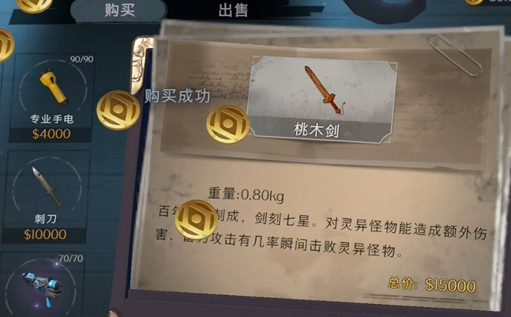 在超自然行动组游戏中获取桃木剑非常的简单,桃木剑是由天雷击桃木形成的材料,经过龙浒山上的高人打造而成,在游戏中玩家可以花费游戏货币来购买获得这把武器,玩家在战斗中长按攻击键蓄力时,剑身的七星会逐颗点亮,当蓄力完成七曜全亮,此时攻击范围会显著增大,同时伤害也会有较大幅度的提升,这一属性让玩家在面对多个敌人时,或者需要对远处敌人造成伤害时,能够通过蓄力攻击来达到更好的战斗效果,