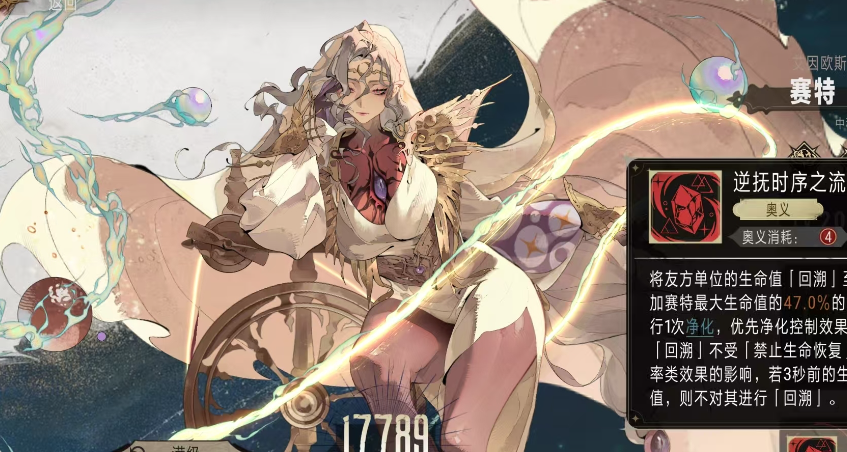 最后一个推荐的角色是赛特,如果说小伙伴们的团队中有着比较脆皮角色的存在,那么赛特就是必不可少的。赛特在释放技能之后将会自动选中己方血量最低的角色,并且为其恢复血量,而特典技能除了恢复血量之外,还可以为己方队友清除debuff。