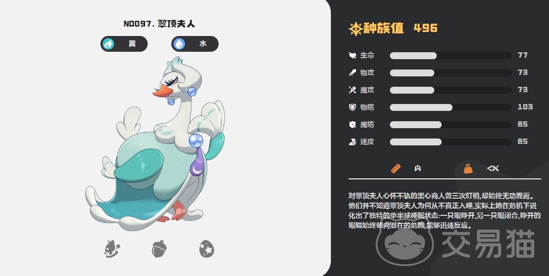 翠顶夫人是洛克王国世界二测的时候上线的新传说精灵,想要获得翠顶夫人就需要先捕捉乖乖鹄,然后通过进化和升星获得蓝珠天鹅,然后在抓捕几只乖乖鹄放生获得升阶材料就可以再次升阶,在蓝珠天鹅三十二级后可以升阶为翠顶夫人,也就是第三阶的最终形态,而想要捕捉乖乖鹄,玩家就需要前往风眠省的隐秘滩涂附近,在河里就会刷新出乖乖鹄了。