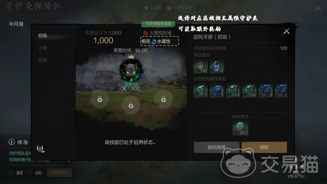 侠行玩法中品质越高的任务,在完成之后能拿到的寒玉或者碎片数量就会更多。守护灵探险队的玩法里面,需要根据对应的区域相克条件,选择合适的守护灵上阵,这样才能拿到额外的寒玉奖励。