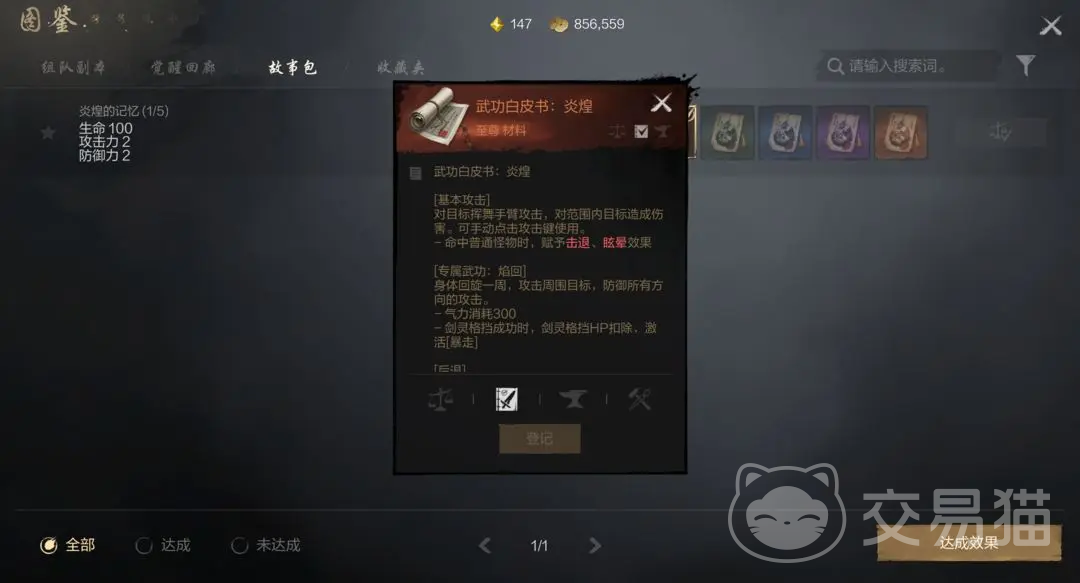 最后是故事包,这是最轻松且简单的一个图鉴属性获取的方式了,体验故事包就能拿到属性,而解锁故事包需要花费金币,需要10万金币来解锁,开启后能领取到1个材料,其他的四个材料都是能体验完故事获得的。