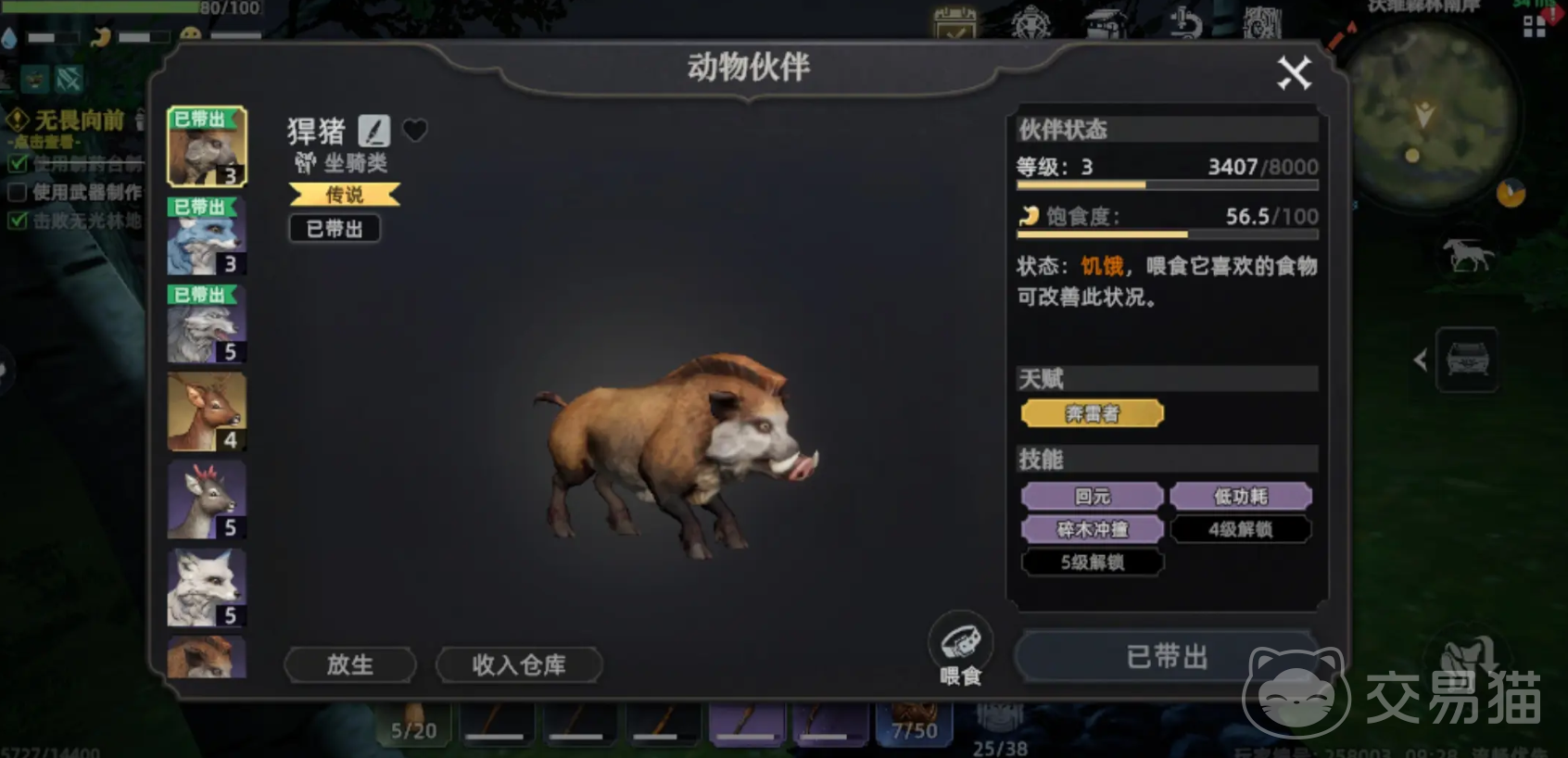 野猪就是第二只给大家推荐的宠物了,它对大家伙主要的帮助方面是在资源采集这一块,主要是对木材的采集更加有帮助作用,能加快木材采集的速度,更快的收集到所需的木材,这对于新手阶段是很重要的,毕竟初期时很多的建造工作都离不开木材这个基础材料,能有效的提升建造的效率。