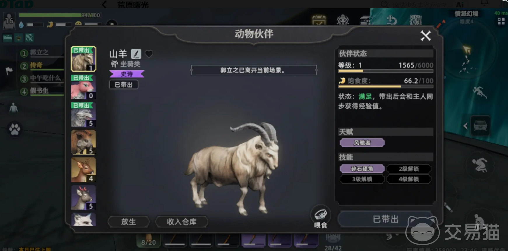 山羊,这是一种用来凿石头的宠物,可以加快朋友们采集石头的速度,不管是建造房屋还是制作工具,这都是必要的原材料,想要抓山羊的话,需要前往雪山,这里的温度很低,山羊被冰封在冰块当中,要先试用篝火将冰块融化,捕捉它最好还是组队前往,有潜在的危险。