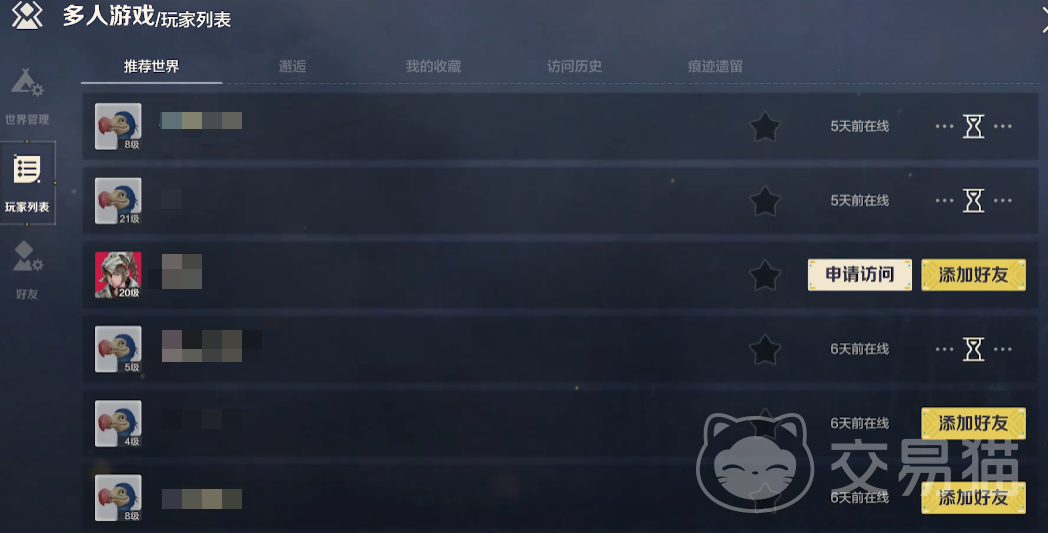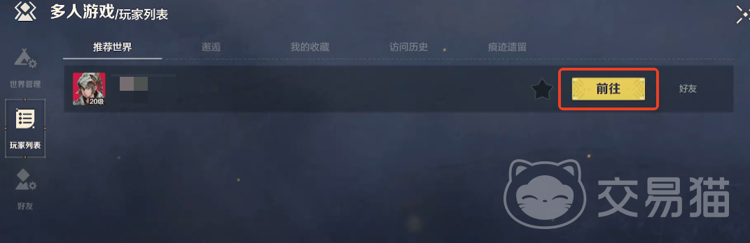 在这个选项中,玩家可以申请访问他人的世界,或是添加好友。下方的搜索框可以直接输入玩家姓名,方便快速查找特定玩家并申请好友请求。对方同意后,你们就正式成为好友啦!接着可以向好友发送访问申请,获得许可,申请按钮会变成“前往”按钮,点击即可进入好友的世界。