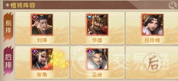 下面给大家推荐的一个阵容是刘璋和华雄以及吕玲绮搭配张角和沮授,其中刘璋主要放在队伍的前面,他自己带有护盾减伤,所以在前排能够很好的扛住敌人的输出。