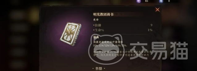 但是需要注意,使用时必须要有队友在旁边,这个效果才会生效,比较适合在团队作战的时候来进行使用,还有一个光教团祷书,这个神奇的效果也是非常稳定的,可以帮助大家来回血,在战斗过程中,可以提供强大的防御和生命加成的效果,比较适合辅助或者奶妈这种角色来使用。