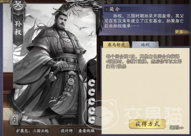 代号杀孙权卡牌技能有什么 代号杀手游孙权卡牌介绍
