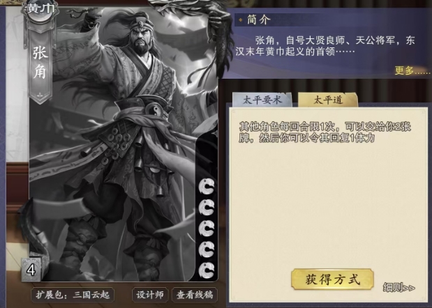 太平道,作为张角在代号杀中的标志性技能之一这个技能允许其他角色每回合限一次,向张角交出2张牌作为入伙费,以此换来1点体力的回复,这种设计也为其在战场上提供了宝贵的支援与恢复能力,更为重要的是通过太平道获得的牌后,张角完全可以选择不令对方回复体力,然而太平道技能的触发条件是比较有难度的。