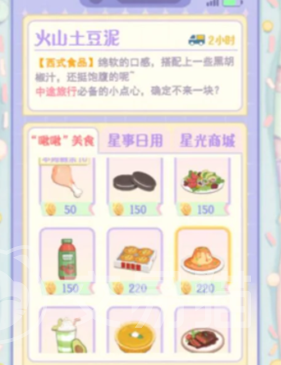 和其他游戏不同的是,里面不再是单纯的控制类玩法,游戏里这三个角色好像真的拥有了生命,会有自己的想法,他们会自由决定自己的服装和每次外出携带的食物,想要准备这些食物的话就需要去商城里购买,当然这些角色在旅游之后,也会带回大量的食物或者是纪念品,可以选择把这些食物通过不同的组合,然后消耗对应的烹饪时间,这样才能烹饪出需求的菜品。