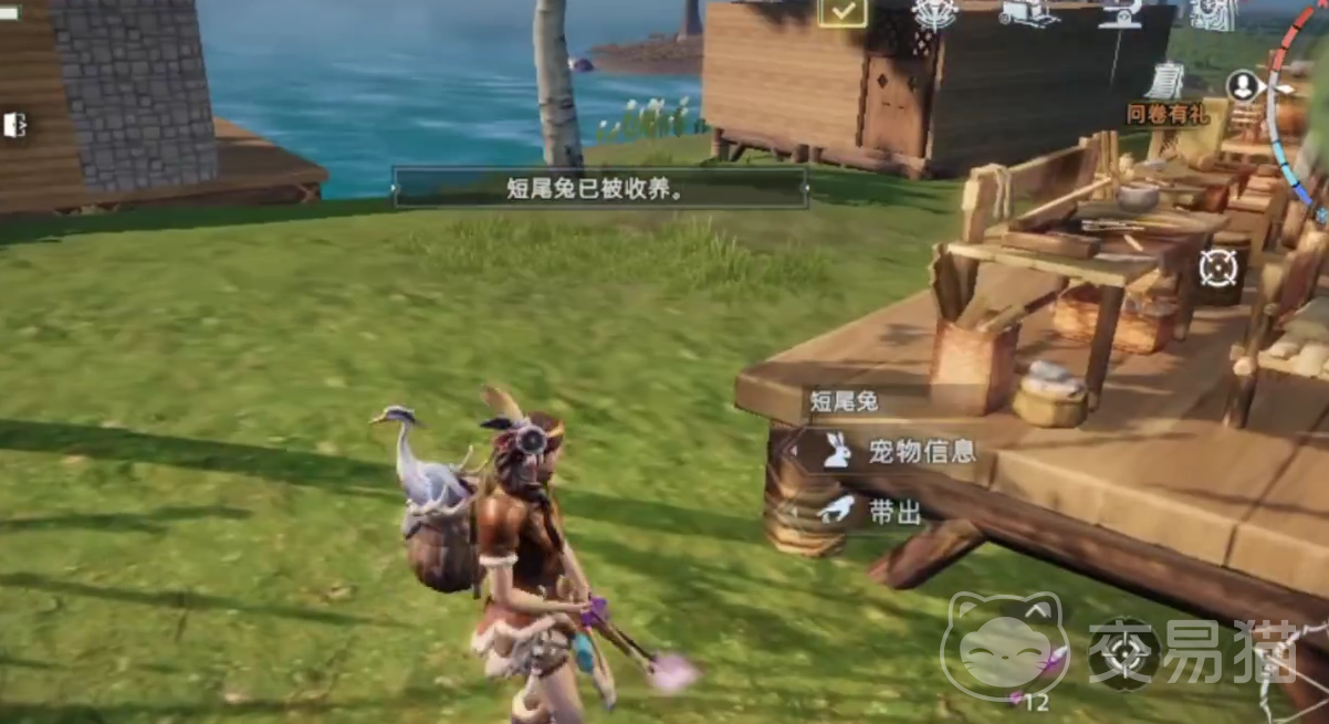 在成功捕捉了短尾兔之后,玩家的背包会自动收录短尾兔这一个宠物,随后玩家将其带出,就可以帮助玩家进行草料的收集了。