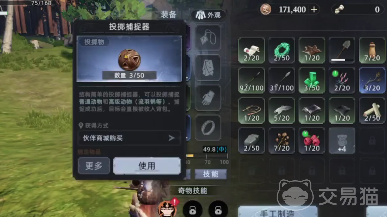 动物陷阱需要提前布置,整体的命中率虽然不如投掷捕捉器,但是可以全自动的捕捉宠物,随着玩家动物陷阱的等级提高,能够捕捉的动物品级也会越来越高。