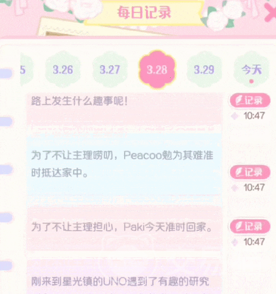 并且这个游戏主打的是陪伴,而不是操控,玩家可以和这些角色一起互动,前一天晚上还可以往衣橱里放置不同的服装,第二天醒来之后,角色会按照自己的心情,在这些服装中自由选择服饰,除了宅在家里,角色还会选择外出旅游,旅游归来之后会带来大量的照片,同时还会收集到剧本,玩家可以选择按照剧本的要求收集物品,收集完成之后就可以去剧场表演。